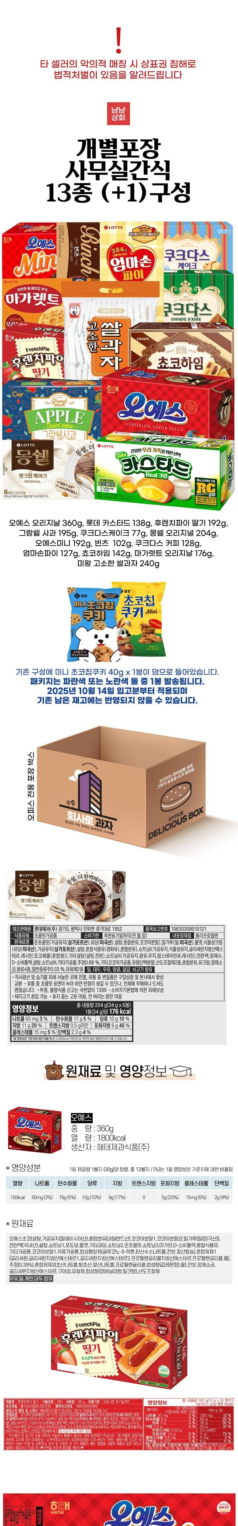 [냠냠 스토어] 대형 오피스 스낵 모음 – 13가지 종류(+1 보너스), 개별 포장