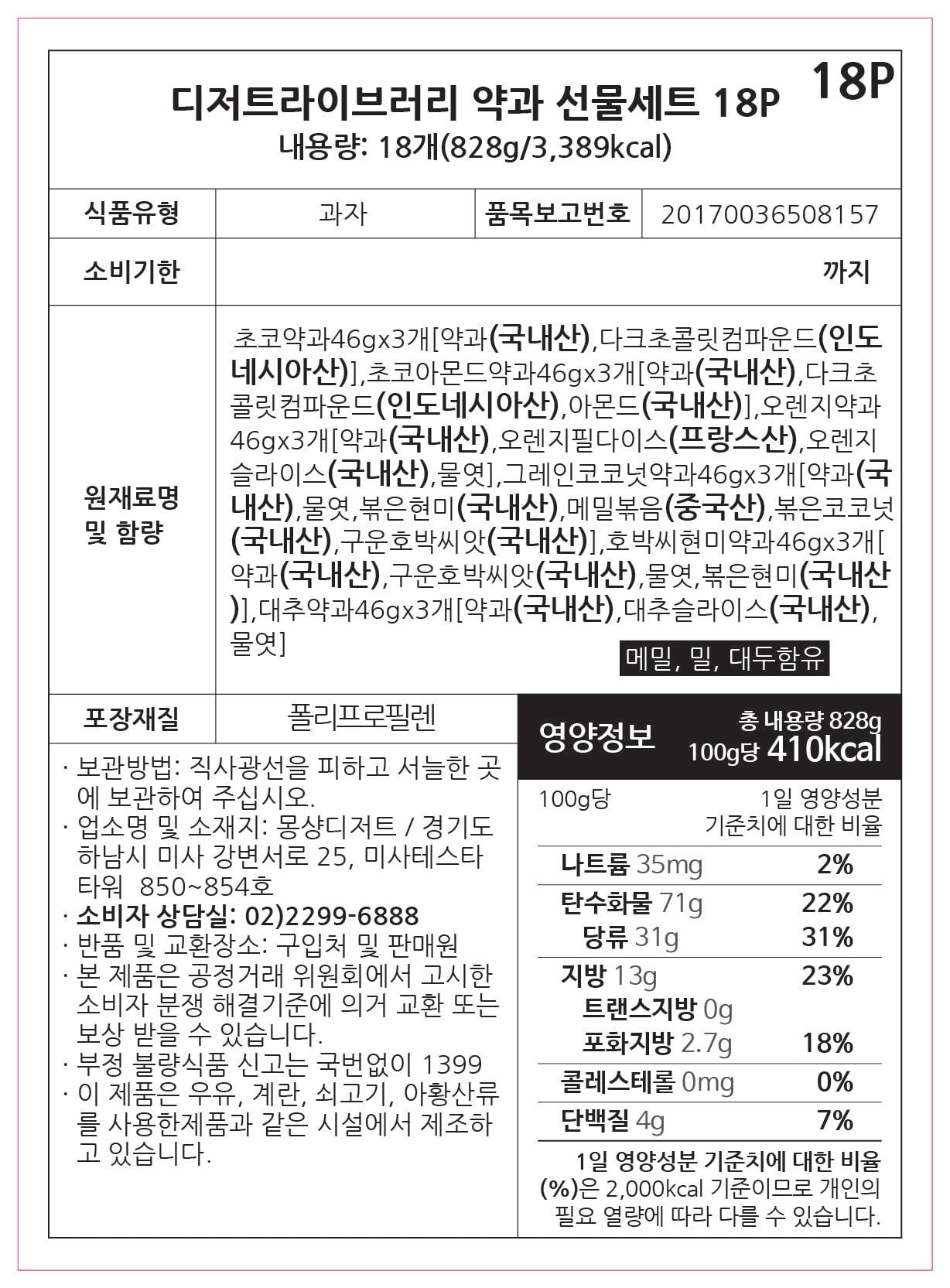 몬샹82 디저트라이브러리 전통약과 선물세트 (18개) + 쇼핑백, 828g, 1세트