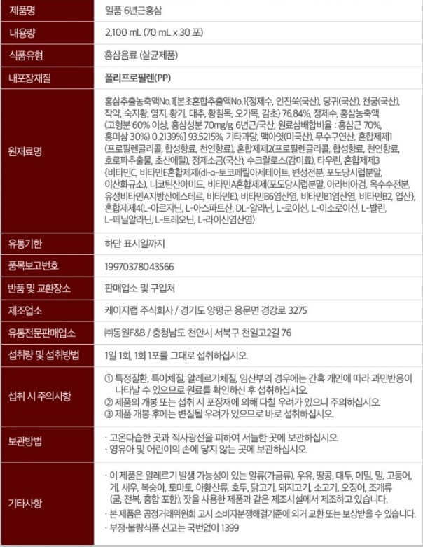 일품 6년근홍삼 70ml × 30포 일품 6년근홍삼 70ml × 30포 일품 6년근홍삼 70ml × 30포