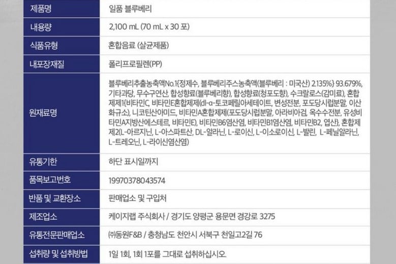 일품 블루베리 70ml × 30포 일품 블루베리 70ml × 30포 일품 블루베리 70ml × 30포